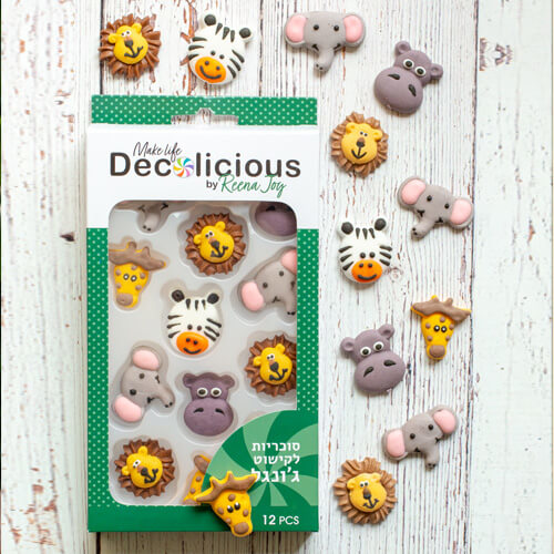 מארז קישוטי רוייאל אייסינג בצורת חיות הספארי לקישוט עוגות עוגיות וקאפקייקס סה”כ: 12 יחידות בחבילה