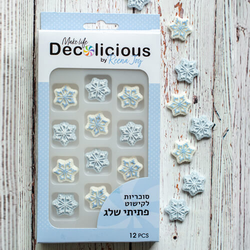 מארז קישוטי רוייאל אייסינג בצורת פתיתי שלג לקישוט עוגות עוגיות וקאפקייקס מושלם ליום הולדת פרוזן סה”כ: 12 יחידות בחבילה