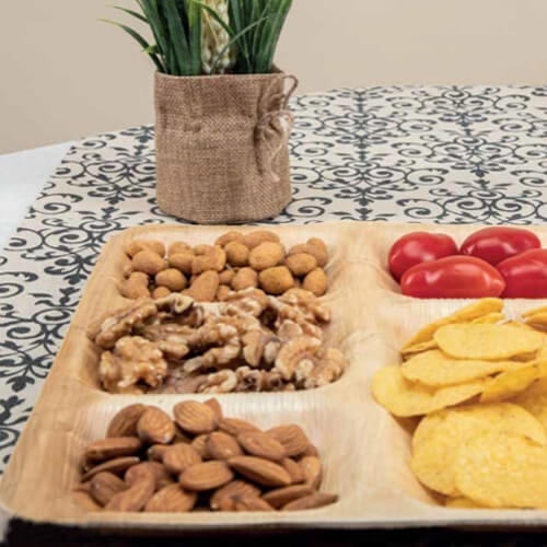 חמגשית מתכלה מעלי דקל כמות: 5 יחידות גודל: 28×23 ס”מ עומק: 2 ס”מ *החמגשית מחולקת ל4 חלקים – 3קטנים ואחד גדול