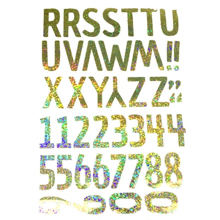 מדבקות לבלונים – אותיות ומספרים אנגלית בזהב הולוגרמי