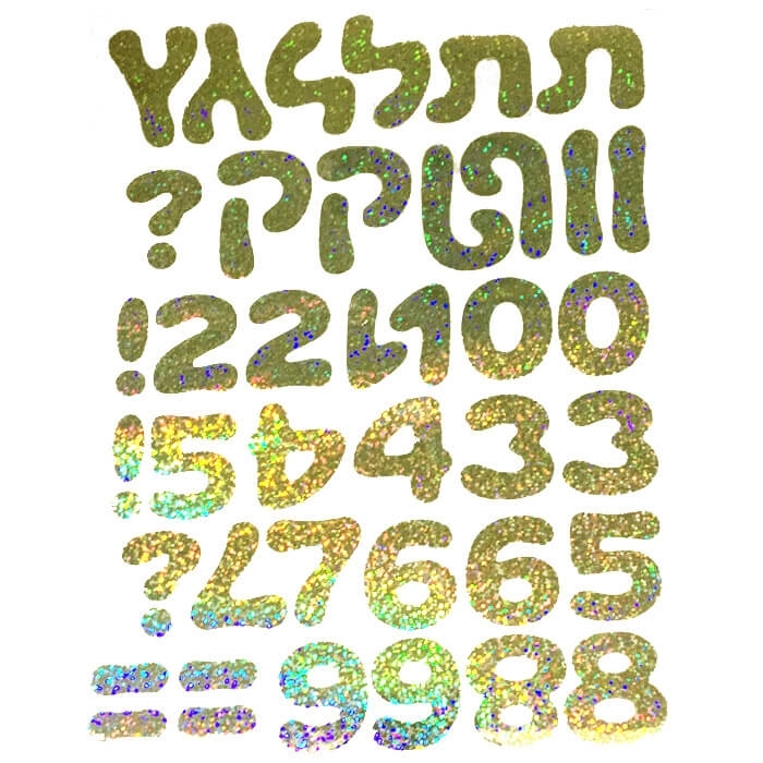 מדבקות לבלונים – אותיות ומספרים עברית בזהב הולוגרמי
