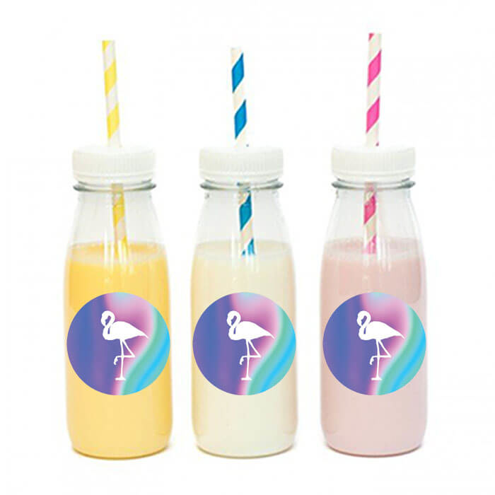 מדבקות עגולות לעיצוב פלמינגו הולוגרפי