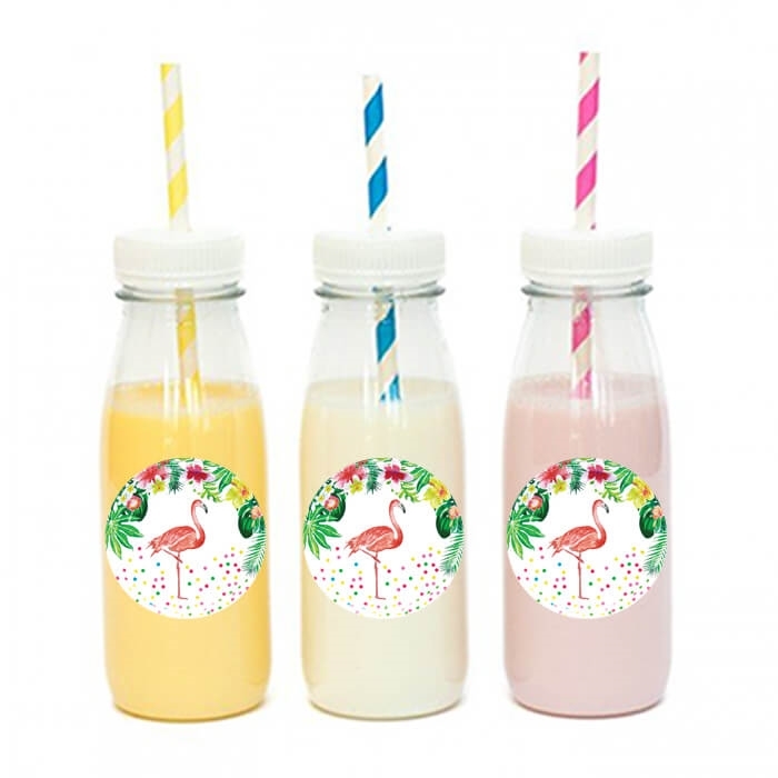 מדבקות עגולות לעיצוב פלמינגו פרחוני