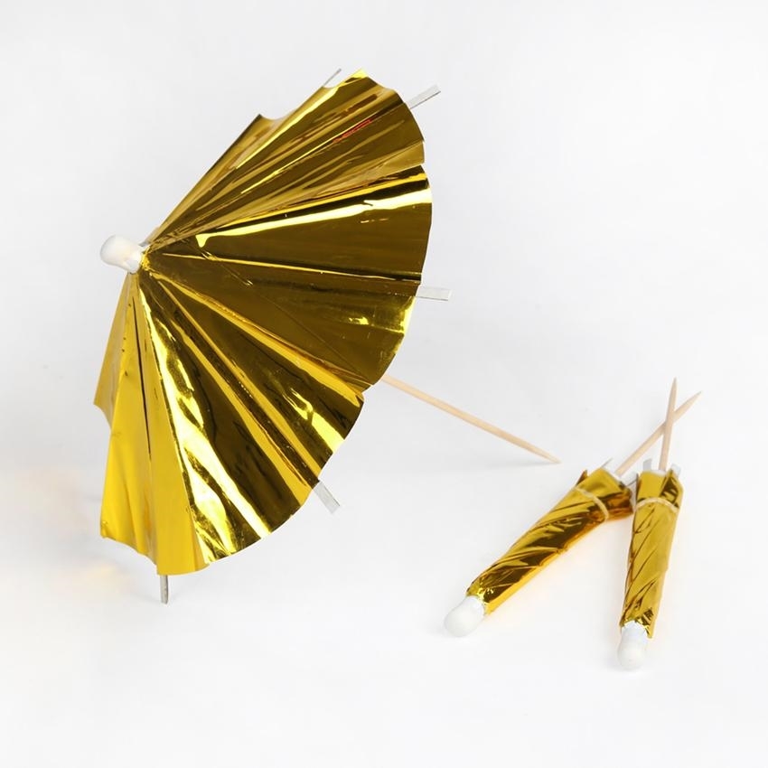 מטריות קוקטייל בצבע זהב מטאלי