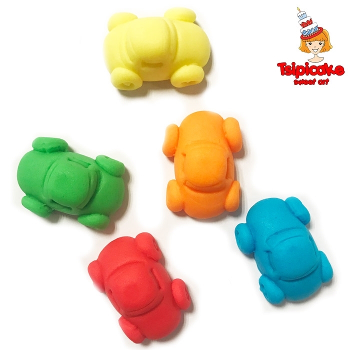 מיני מכוניות מבצק סוכר צבעוניות לעיצוב עוגה 5 יח’