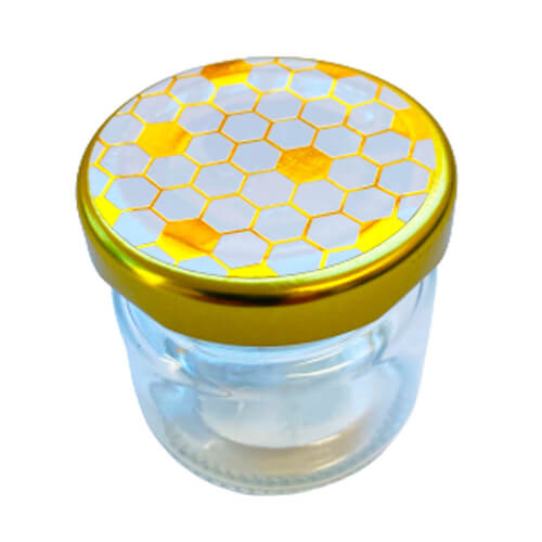 מיני צנצנת זכוכית לדבש, בעלת מכסה בעיצוב כוורת,