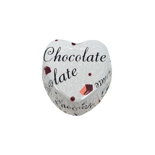 מנג’טים קטנים מאלומיניום להכנת פרילינים משקולד בצורת לב לבן עם כיתובי שוקולד