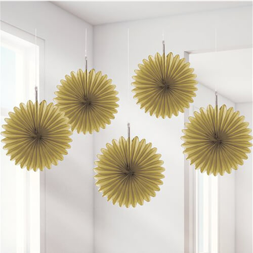 סט של 5 קישוטי מניפה בצבע זהב מושלמות לקישוט מסיבת בלונים זהב שחור