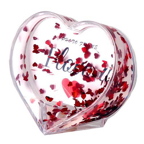 מסגרת לתמונה בצורת לב על פתיתי קונפטי אדומים, ניתן להחליף את התמונה מאחרוה לתמונה אישי. מושלם ליום האהבה, לחברה או סתם למתנה גודל: 10×10 ס”מ