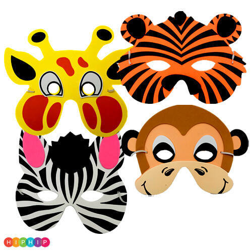 מסיכות מסיבה איכותיות בשלל עיצובים מגניבים: קוף, ג’ירפה, נמר וזברה