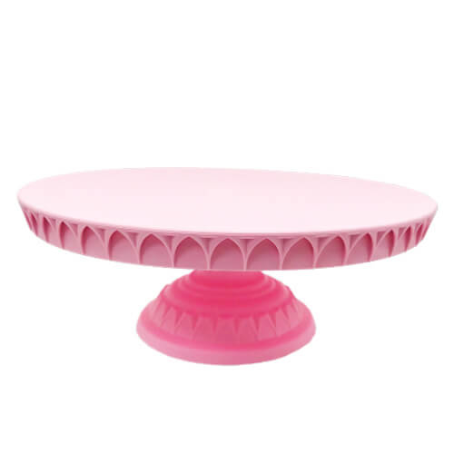 סטנד מהמם מתברג 3 חלקים להגשת עוגה עשוי מפלסטיק, בצבע ורוד. קוטר המעמד: 32.3 ס”מ.