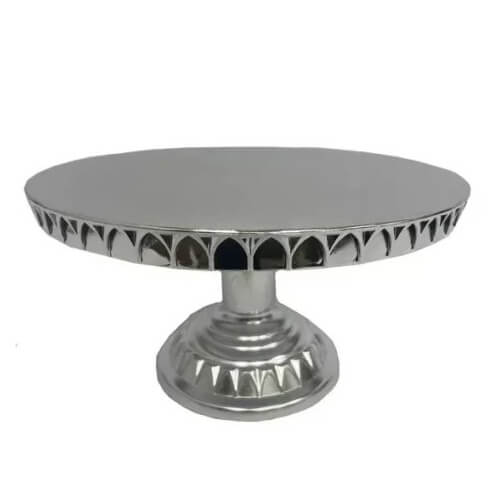 סטנד מהמם להגשת עוגה, עשוי מפלסטיק, בצבע כסף מטאלי.