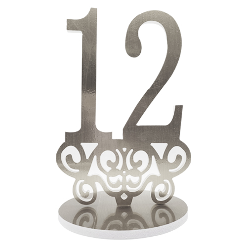 מעמד עץ מטאלי לעיצוב שולחן בת מצווה בעיצוב מיוחד – ספרה 12 כסף למראה יוקרתי ומיוחד.