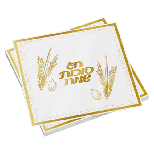 מפיות גדולות בצבע זהב עם כיתוב חג סוכות שמח