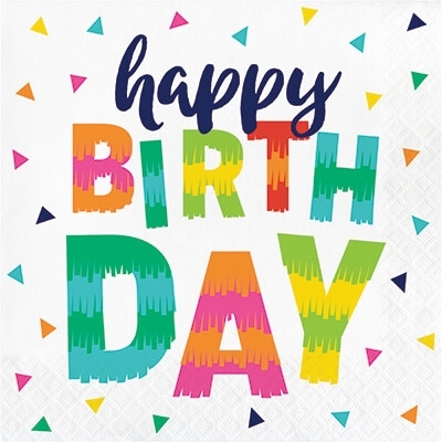 חבילת 16 מפיות גדולות עם כיתוב happy birthday השייכות למסיבת חמור מקיסקני