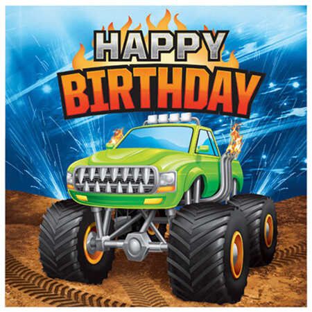 מפיות יומולדת גדולות בקונספט משאיות מפלצת עם כיתוב happy birthday