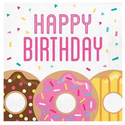 חבילה של 16 מפיות גדולות עם יום הולדת שמח למסיבת דונטאס!