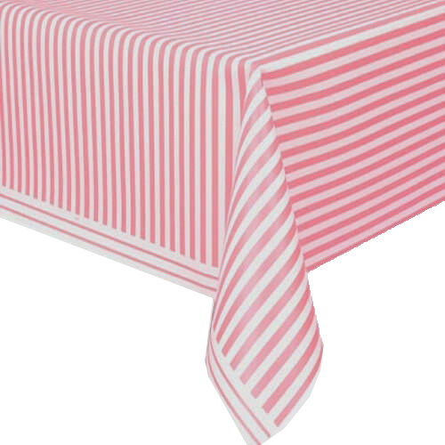 מפת שולחן חד פעמית,בצבע לבן עם פסים ורודים. גודל: 137×274 ס”מ