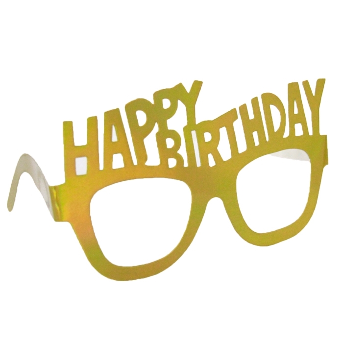 משקפיים בצבע זהב מבריק עם כיתוב happy birthday 4 משקפיים בחבילה