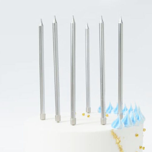נרות ארוכים – כסף מטאלי