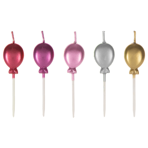 נרות בצורת בלונים ציבעוניים בצבעי כרום, מושלם לקישוט עוגת יום הולדת