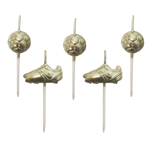 נרות בצורת נעלי כדורגל וכדור כדורגל בגוון זהב מטאלי כמות בחבילה: 5 יחידות