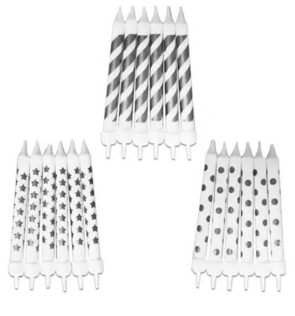 נרות לעוגת יום הולדת בצבע לבן עם צורות בכסף