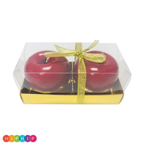 נרות תפוח ארוזים, מתאים לעיצוב השולחן בראש השנה, או כחלק ממתנה כמות: 2 נרות תפוח באריזה גודל האריזה:10.5X5x6 ס”מ