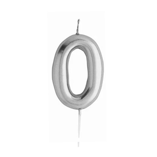 נר יום הולדת ספרה 0 כסף מטאלי