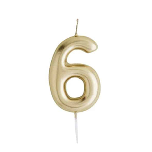 נר ספרה 6 בצבע זהב מטאלי לקישוט ועיצוב העוגה
