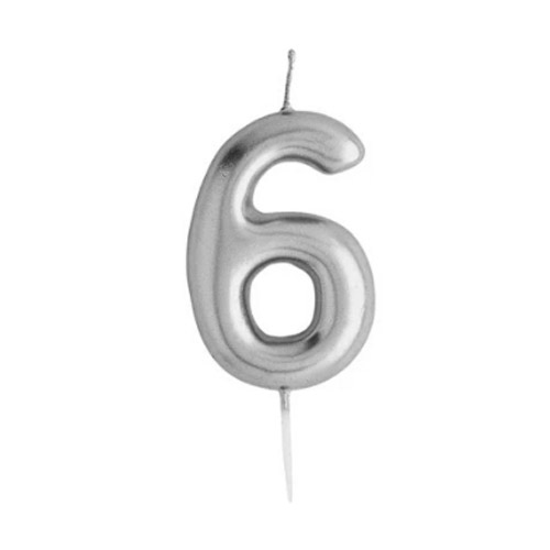 נר יום הולדת ספרה 6 כסף מטאלי