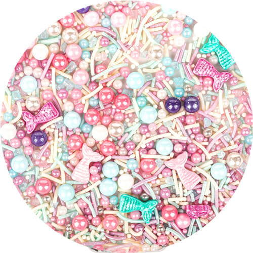 סוכריות מיוחדות ואיכותיות לקישוט עוגות, עוגיות וקאפקייקס בצבעי פסטל בקונספט בנות ים כמות: 120 גרם