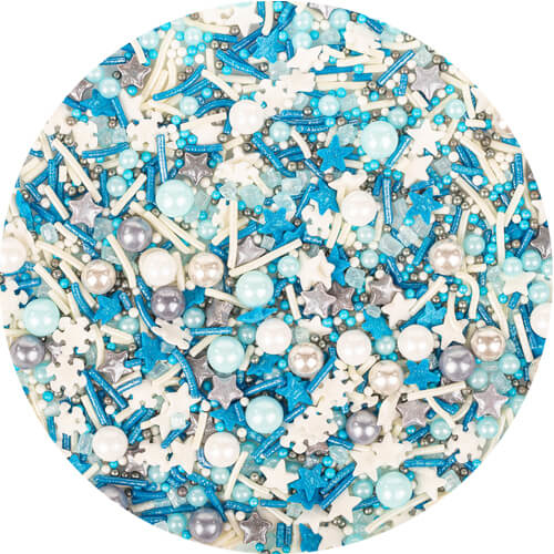 סוכריות מיוחדות ואיכותיות לקישוט עוגות, עוגיות וקאפקייקס בצבעי תכלת, כחול ולבן כמות: 120 גרם