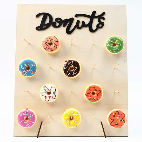 סטנד עץ לדונאטס, עם כיתוב Donuts