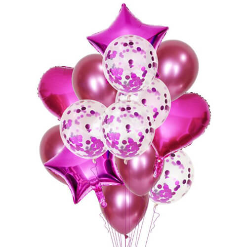 סט בלונים ורוד פוקסיה בשילוב קונפטי