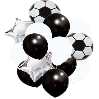 סט בלונים כדורגל הסט כולל: 2 בלוני מיילר כדורגל בגודל 45 ס”מ 2 בלוני מיילר כוכב כסוף בגודל: 45 ס”מ 10 בלוני גומי בצבעי שחור לבן בגודל : 30 ס”מ לא מגיע מנופח