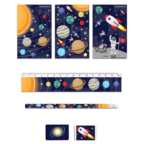 סט מכשירי כתיבה בקונספט חלל, מושלם כהפתעה במסיבת יום הולדת, או כמתנה חזרה לבית הספר