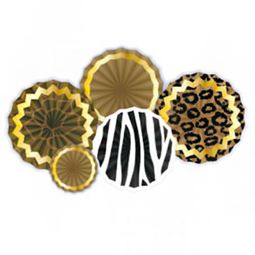 סט מניפות בקונספט ספארי בשלל הדפסי חיות, ובשילוב הטבעת זהב. 5 מניפות במארז.