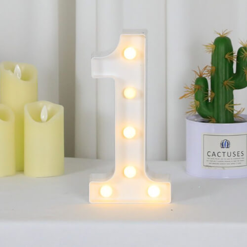 ספרה 1 בצבע לבן עם אורות לד לעיצוב חדר או אירוע