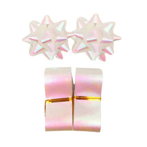 סרט מתנות + פרחים בצבע פנינה