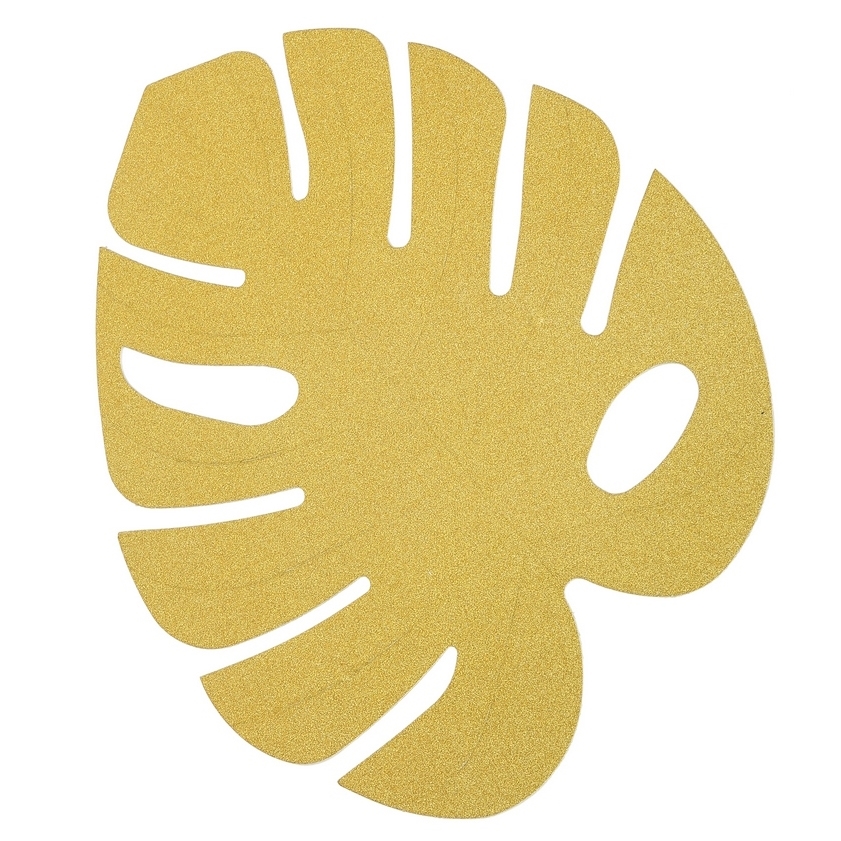 עלים טרופים גדולים בצבע זהב מצנץ גודל: 34×28 ס”מ