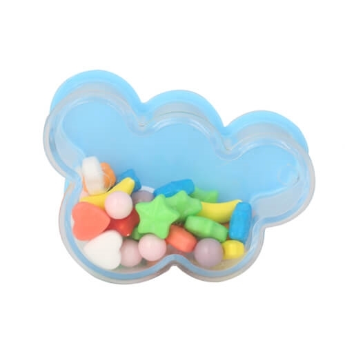 בקבוקון בצורת ענק שקוף עם תחתית תכלת למילוי סוכריות עדשים ועוד מושלם לעיצוב שולחן גודל: 7.5×5.5 ס”מ