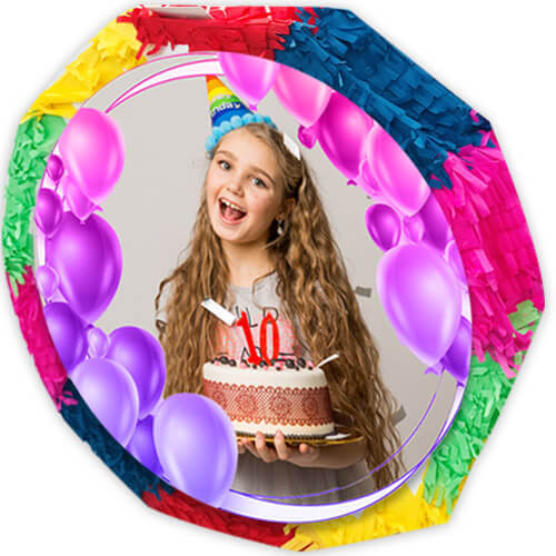 פיניאטה צבעונית בעיצוב אישי לכל אירוע, ניתן להדפיס על הפיניאטה כל תמונה שתבחרו, מגיע עם פרנזים צבעוניים בתחתית