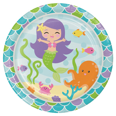 חבילה של 8 צלחות גדולות מנייר השייכות למסיבת בת הים הקטנה