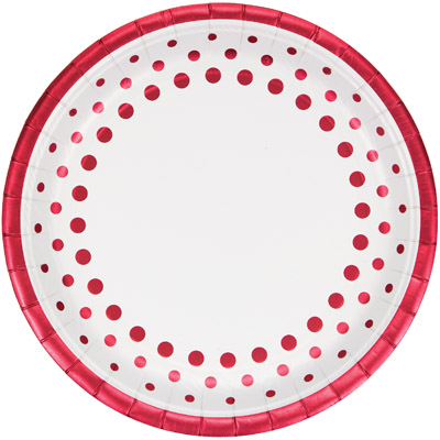 חבילה של 8 צלחות גדולות מנייר עם נקודות אדומות מצנצות גודל: 10″