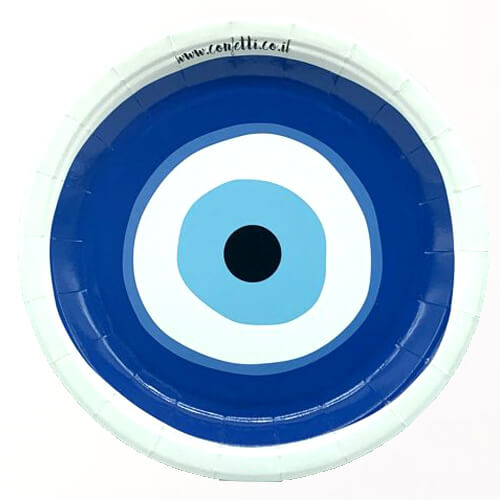 צלחות מסיבה גדולות בעיצוב עין יוונית למסיבה צבעונית ומושלמת
