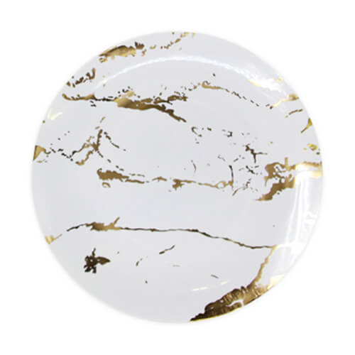 צלחות בינוניות ויוקרתיות בדגם גרניט לבן זהב