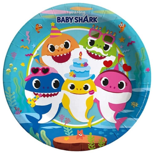 צלחות נייר גדולות בקונספט בייבי שארק