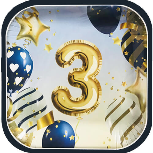 צלחות גדולות לחלאקה בדוגמאת בלונים וכוכבים בצבעי כחול זהב