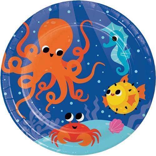 חבילת 8 צלחות גדולות השייכות למסיבת מתחת למים